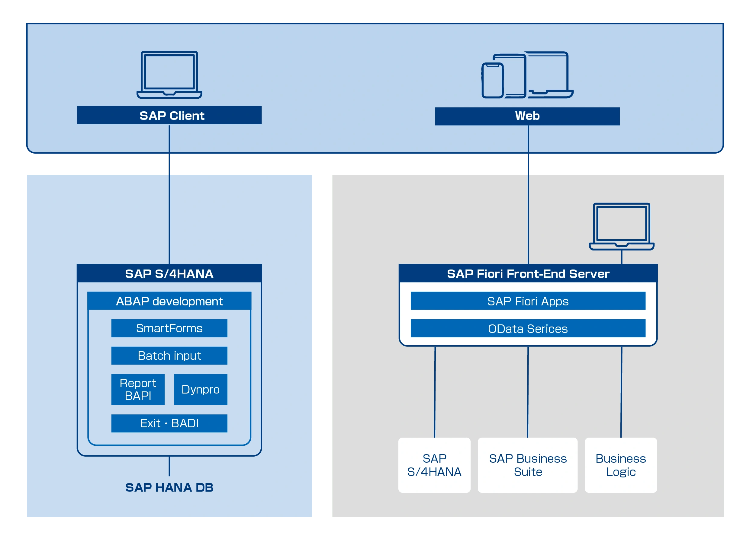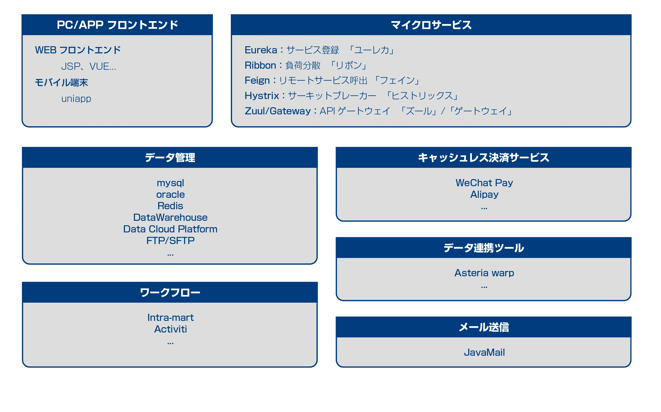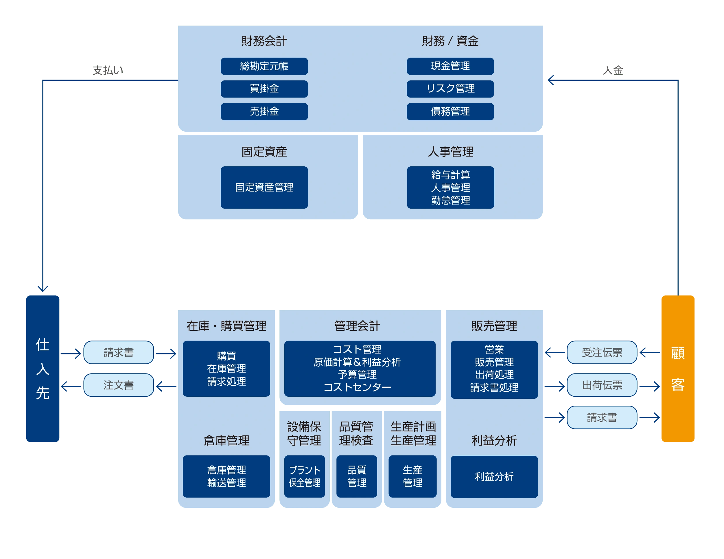 SAPおよびOPEN系技術を中心に、他の先進技術を組み合わせることで、強力な統合性と柔軟性を発揮し、企業の多様な管理ニーズに応えます。