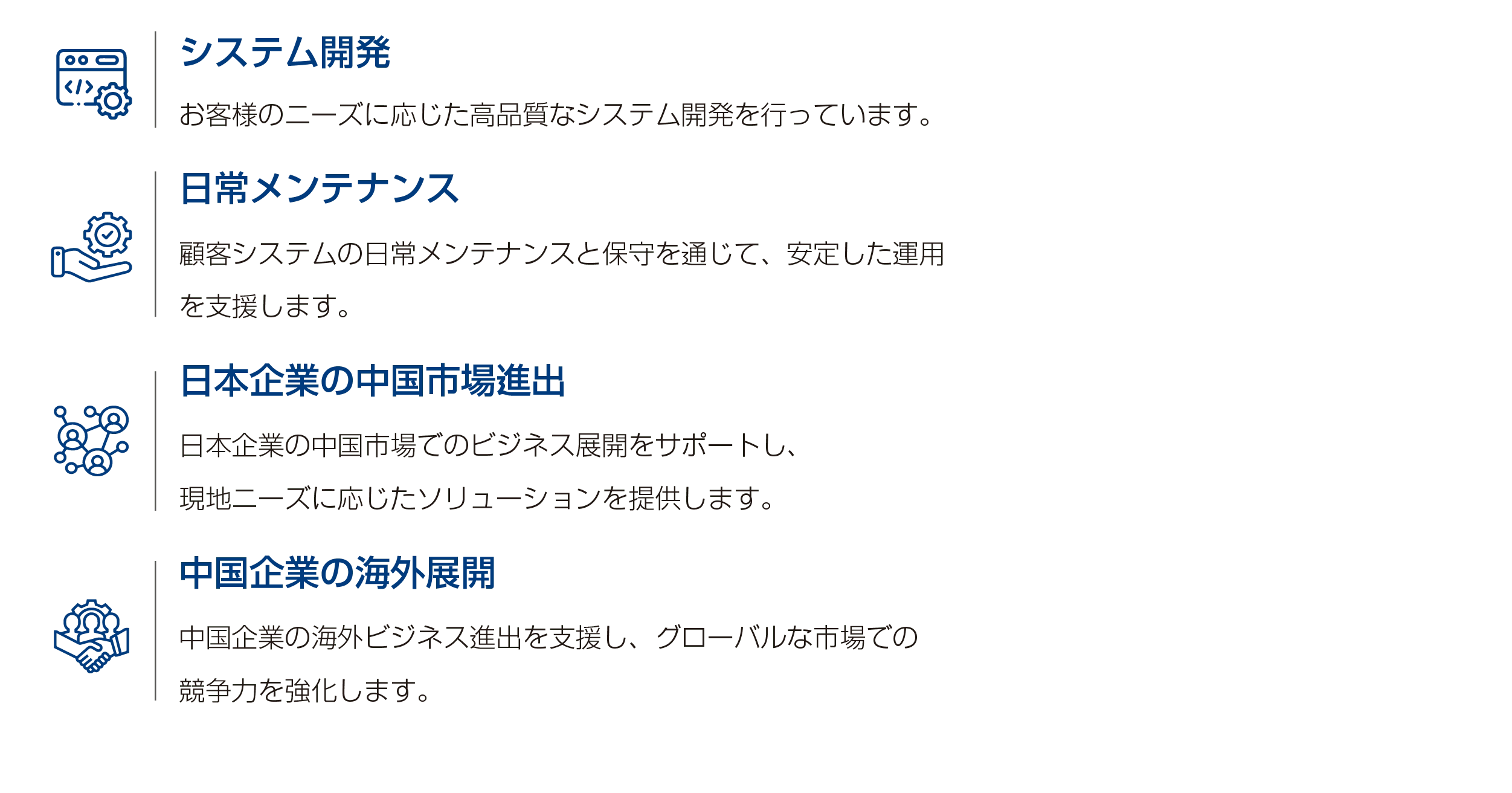 幅広い業界のシステム開発の豊富な経験を活かし、多様なニーズに応じた最適なソリューションを提供しています。